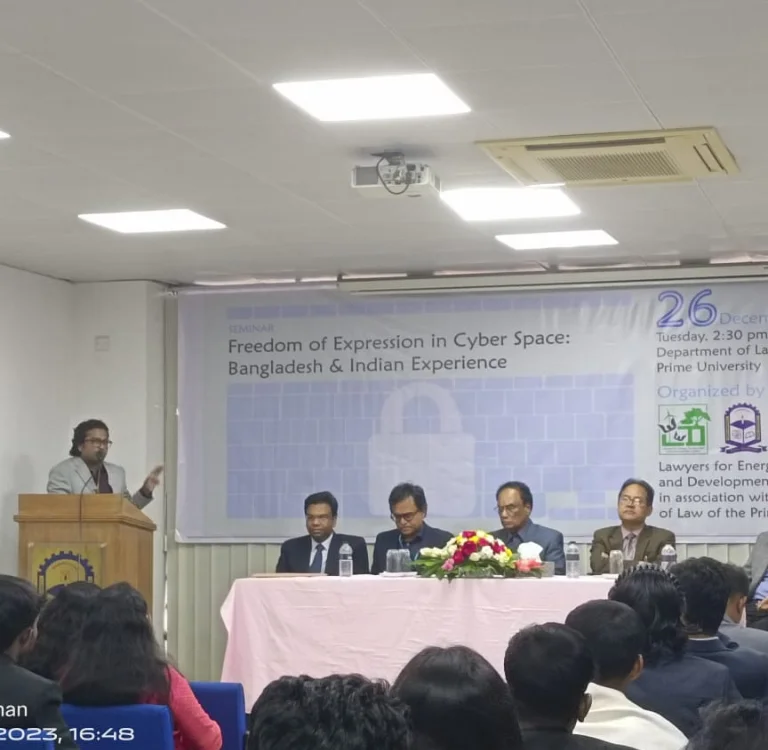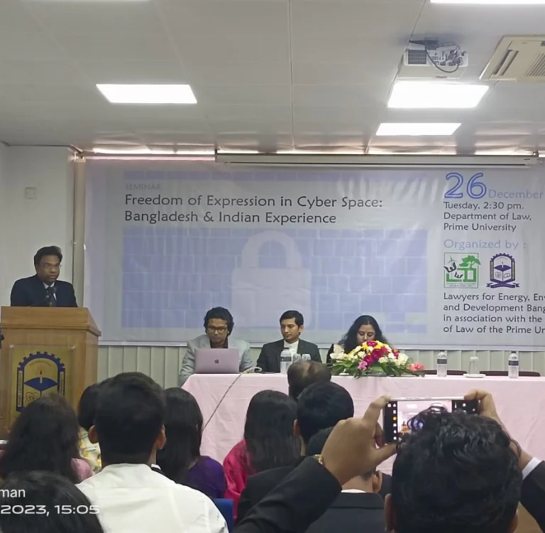 Conducting research around critical issues affecting the Bangladesh and South Asia region regarding Energy Law, Environmental Law, and Cyber Law. Our research outputs are based on methodologies that include desk and online research, surveys, interviews, focus group discussions, and fieldwork.